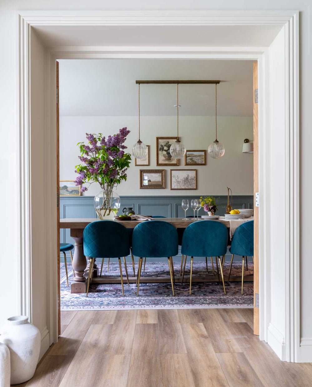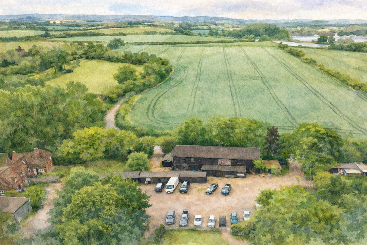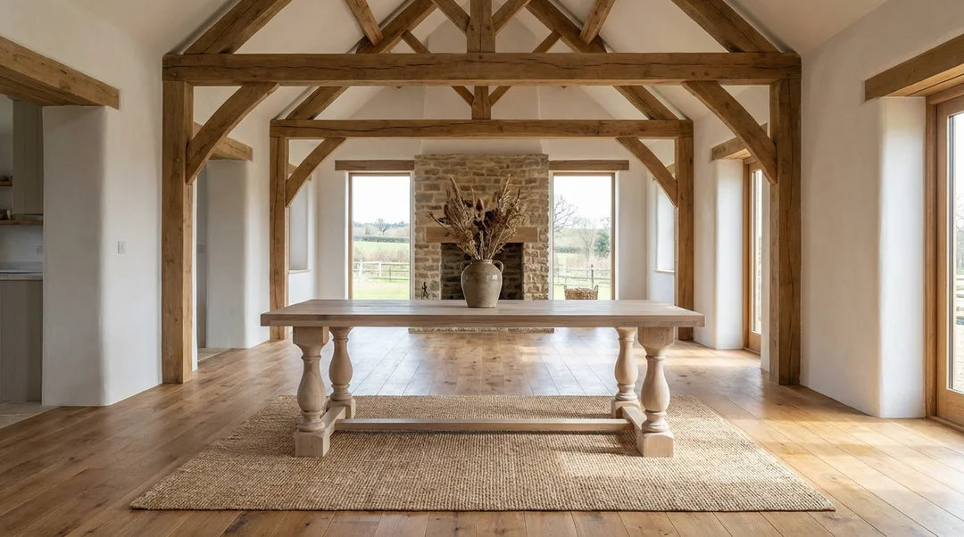 Visiting our showroom is far from an average shopping trip. Nestled between two beautiful reservoirs, our 10,000 sq ft Dutch barn showroom is often described as an Aladdin's cave. We showcase over 30 of our signature tables across eight large rooms filled with furniture, all available for immediate purchase and delivery. You can also customise designs to your preferred size and finish. My dad Paul, brother Justin, or me will be ready to assist if you have any questions. Additionally, you can meet Winnie the pig, Rain the horse, Paddy and Sheamus the Shetland ponies, and our friendly giant dog Barney Boy. After shopping, we can recommend some lovely local spots for
