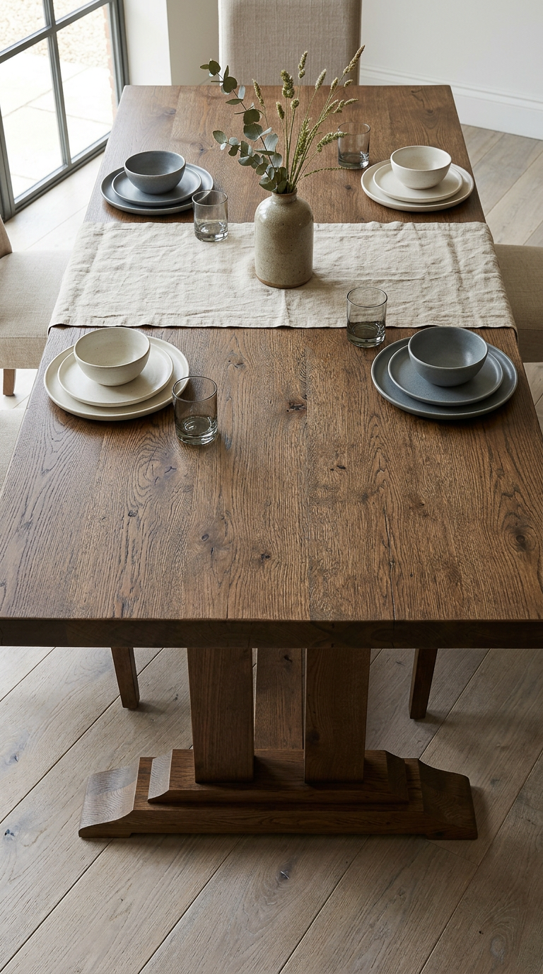 Every dining table we make is totally custom. We don’t mass-produce generic parts or just fix a standard base under a top. Every piece is made just for your order, including the base, so you’ve got good legroom and the right proportions. We even use all the timber from the same batch of wood, so the tones and grain match across the whole table, making everything look more consistent and balanced.