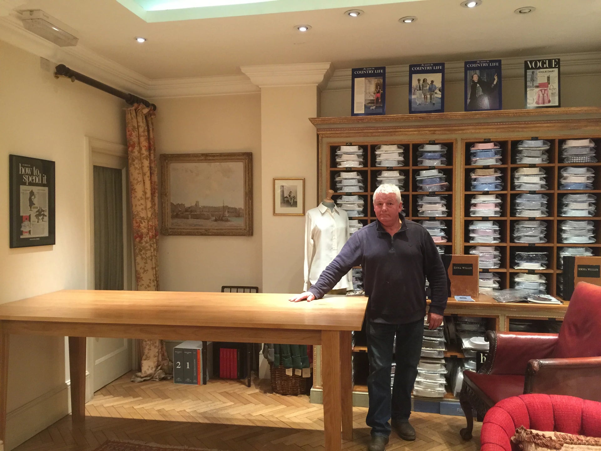 Dad delivering a cutting table to a tailor on Jermyn Street London