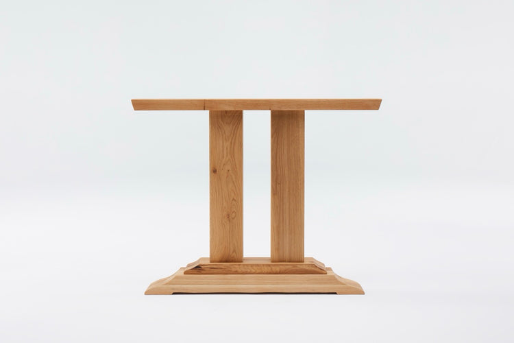 All of our rectangular and square tables can be manufactured as extending tables. We can extend them by up to 45 cm at each end, with the extension leaves stored away when not in use. When the leaves are in place, the wood grain aligns seamlessly with the existing table, as all this timber is derived from the same board.