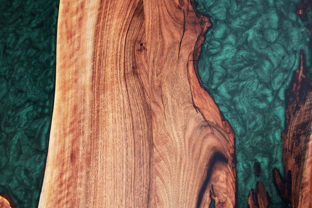 Minimal natural imperfections/cracks that are filled with a clear resin for a totally smooth finish