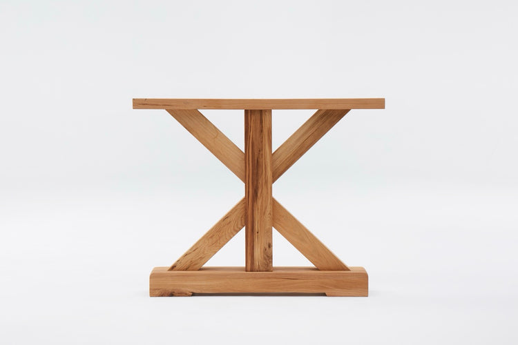 Gently inspired by traditional truss forms, this design feels architectural yet understated. The central support keeps the space around the table open, providing excellent legroom, and works particularly well in homes with exposed beams or converted barn spaces.